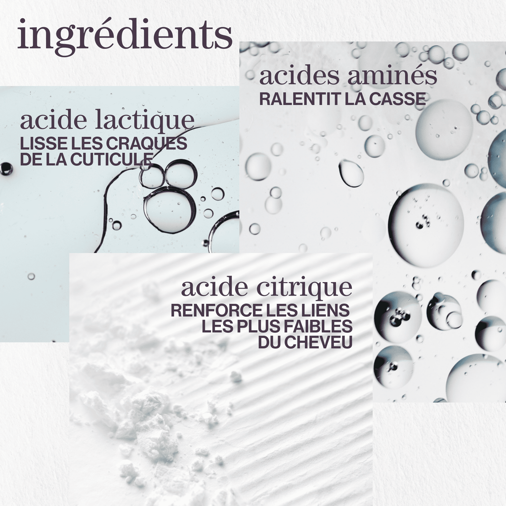 - Acide Critique : Renforce les liens les plus faibles du cheveu.