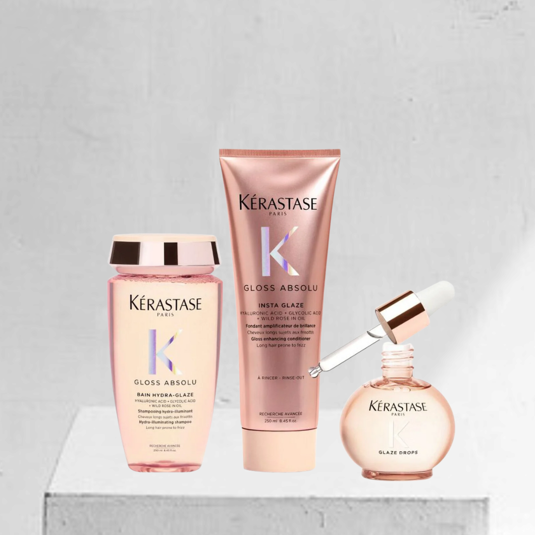 Découvrez la routine Gloss Absolu Core, idéale pour des cheveux brillants, lisses et rebondis au quotidien. Enrichie en acide hyaluronique, acide glycolique et huile de rose sauvage, elle offre hydratation, douceur et maîtrise durable des frisottis, parfaite pour les cheveux longs indisciplinés.