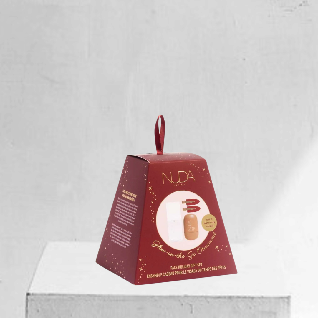 Un coffret des Fêtes prêt à offrir (ou à s’offrir !) réunissant deux essentiels NUDA : la Brume autobronzante visage CloudMist et les Gouttes bronzantes GlowDrops, nos incontournables les plus aimés. Ce duo beauté est accompagné d’un adorable ensemble de deux pinces à cheveux Red Velvet, parfaites pour retenir vos mèches pendant votre routine glow, le tout présenté dans un emballage festif compact et raffiné.