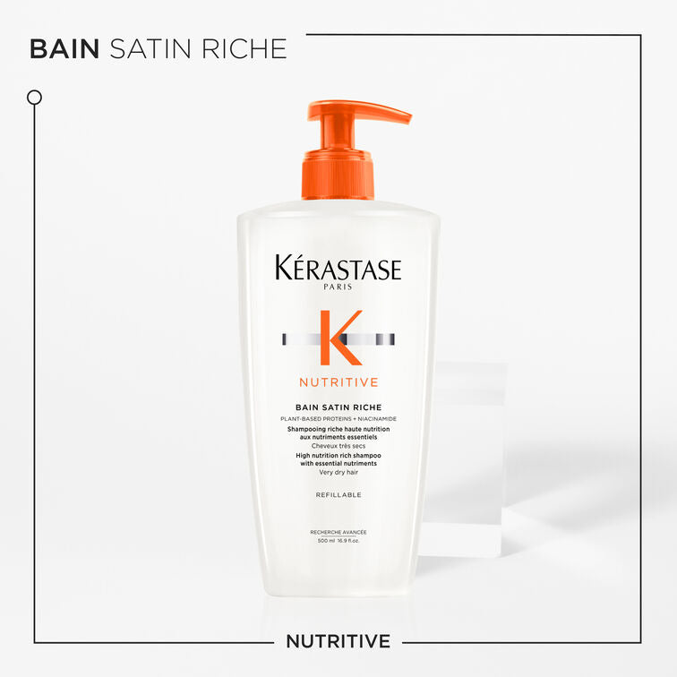 - Nutrition intense : Le bain satin riche de Kérastase offre une nutrition intense et profonde aux cheveux les plus secs et déshydratés, leur redonnant vitalité et douceur.