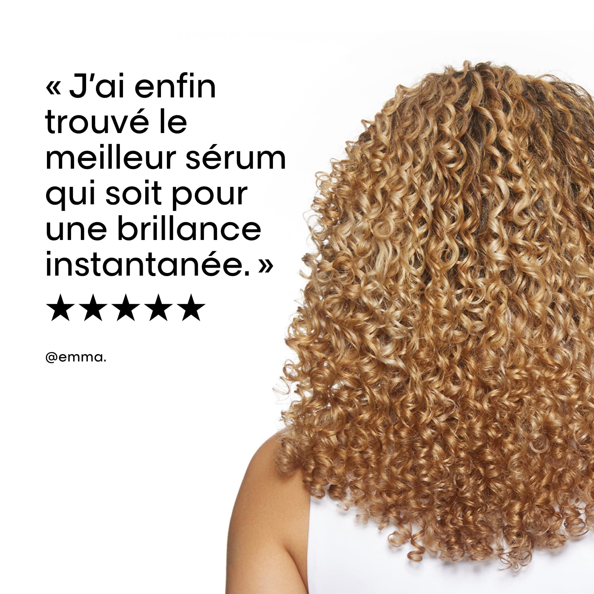 Un sérum breveté sans rinçage qui offre une brillance instantanée et des résultats durables jusqu'à 10 lavages**. Anti-frizz jusqu'à 72H***, Anti-humidité***, Anti-délavement*.****Tests instrumentaux.